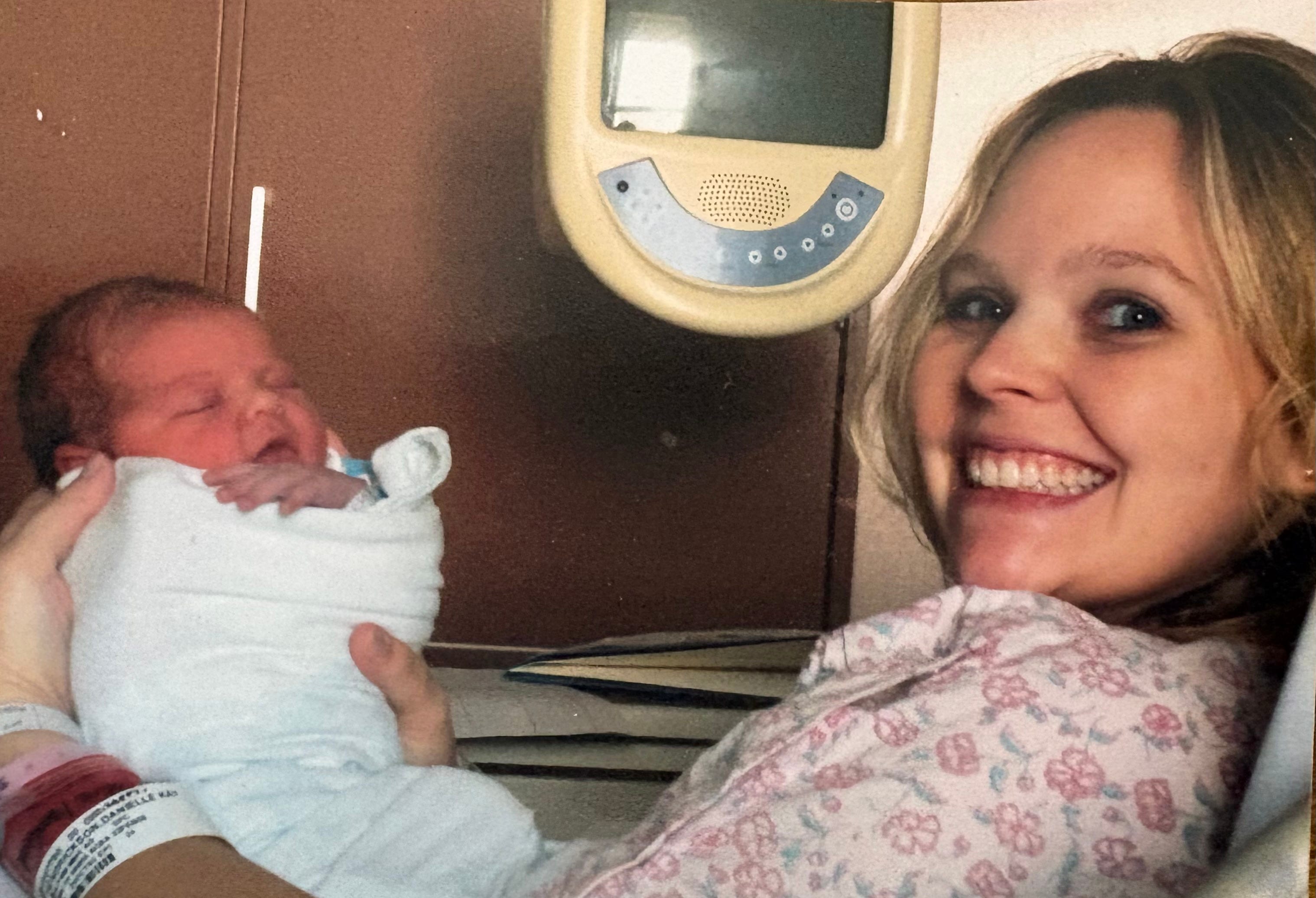 Pictured: My baby girl and I - 2/22/08, Tripler Hospital, Honolulu, HI. ARE THOSE ROSES on my hospital gown?!