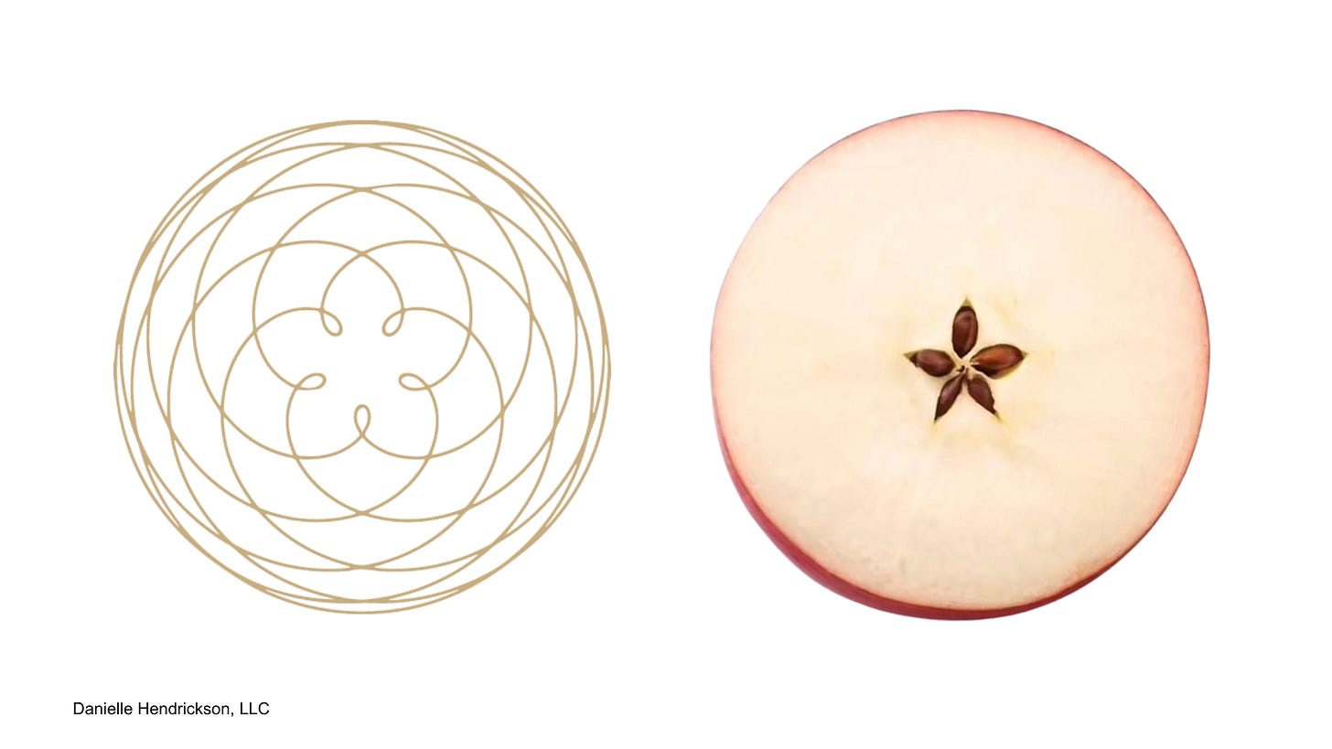 Now, at 42, I can see the design clearly. I teach the Venus cycle as the path of the sacred feminine. The cycle that traces a five pointed Rose across the sky every eight years. The same fivefold pattern hidden inside an apple.